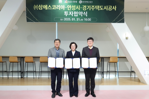 [금요저널] 안성시는 21일 안성맞춤 문화살롱에서 김보라 시장, 경기주택도시공사 김민근 전략사업본부장 및 ㈜삼에스코리아 대표 김세완 등이 참석한 가운데 투자유치 협약식이 있었다고 밝혔다.