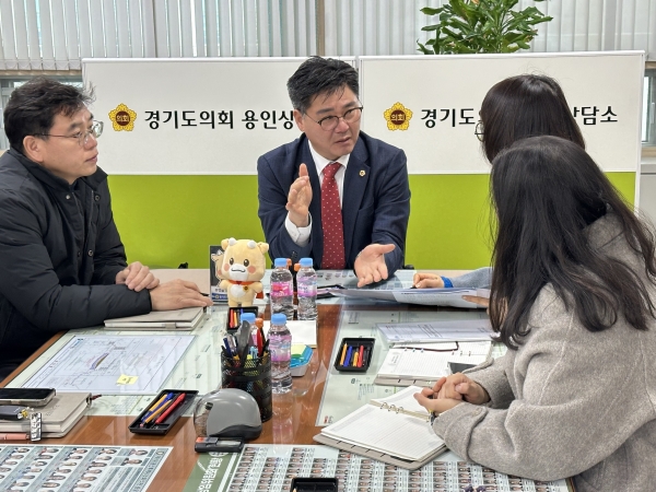[금요저널] 경기도의회 정하용 의원은 21일 경기도의회 용인상담소에서 용인시 푸른공원사업소 동부공원관리과, 기흥구청 교통과 등 관계 공무원과 함께 용인시 기흥구 보라동 일원 건강마당근린공원 안전정비사업계획에 대해 논의하는 자리를 마련했다.