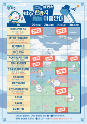 [금요저널] 파주시는 2025년 설날 연휴 기간 주요 관광지와 시설의 운영 계획을 안내했다.