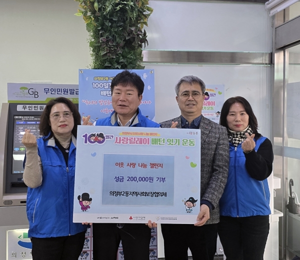 100일간의 사랑릴레이 배턴 잇기는 1월 28일까지 계속되며 기탁을 원하는 누구나 의정부2동주민센터 보건복지팀을 통해참여할 수 있다.