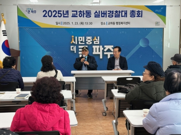 [금요저널] 파주시 교하동 실버경찰대는 지난 23일 교하동행정복지센터 다목적 대회의실에서 ‘2025년 실버경찰대 총회’를 개최했다.
