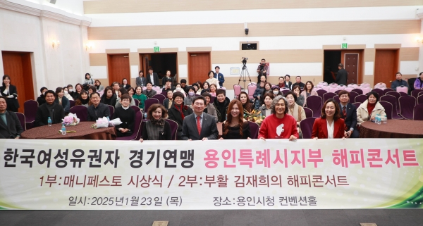 [금요저널] 용인특례시는 23일 오후 시청 컨벤션홀에서 ‘한국여성유권자연맹 메니페스토 시상식’과 ‘해피콘서트’ 가 열렸다고 24일 밝혔다.