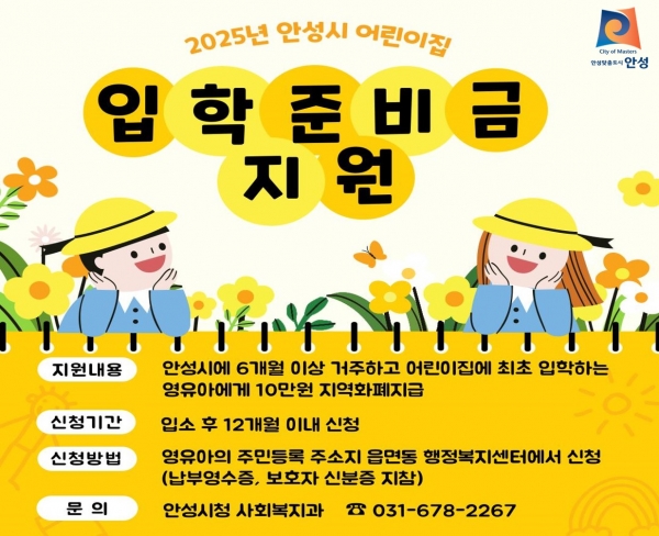 [금요저널] 안성시는 2025년 어린이집 입학준비금을 지원한다고 밝혔다.
