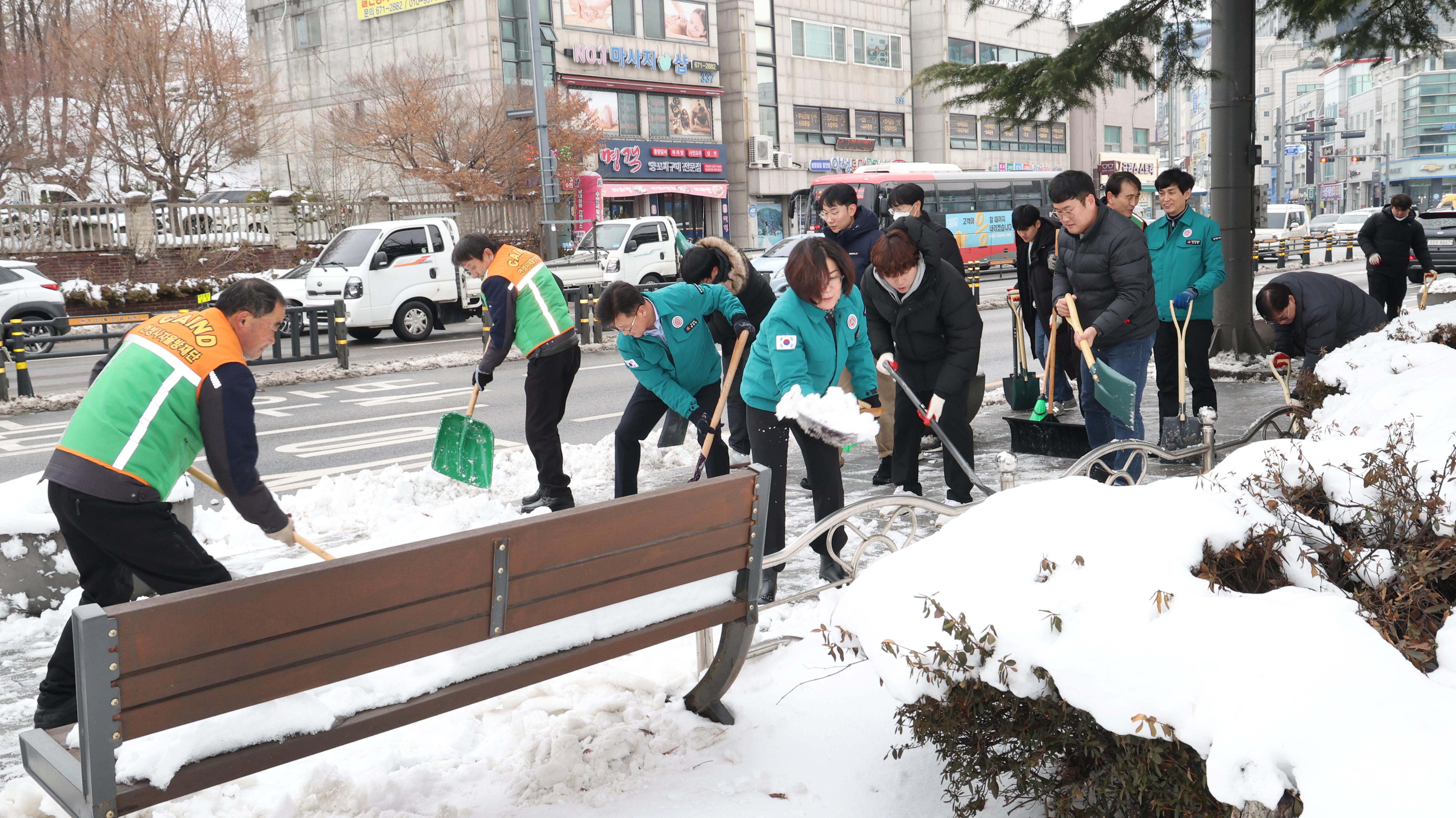 시는 31일 공무원 등 가용 인력 200여 명과 장비를 배치해 주요 도로변 및 시가지 일원, 특히 보행량이 많고 낙상 위험이 있는 응달 지역을 우선으로 후속 제설작업을 진행했다.