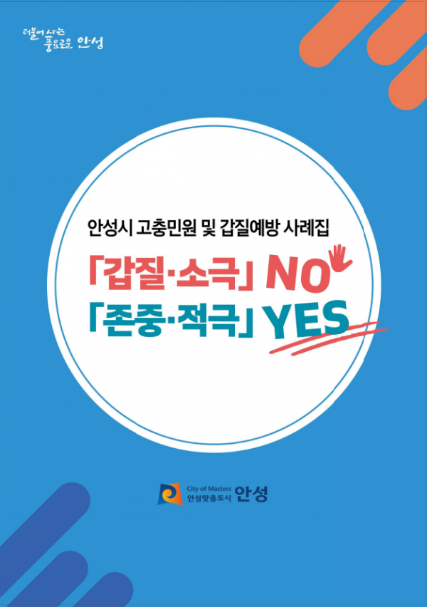 [금요저널] 안성시는 지난 4년간 청렴 행정을 펼치기 위해 걸어왔던 발자취가 담긴 ‘안성시 고충민원 및 갑질예방 사례집’을 발간해 전 부서 및 읍·면·동에 배포한다.