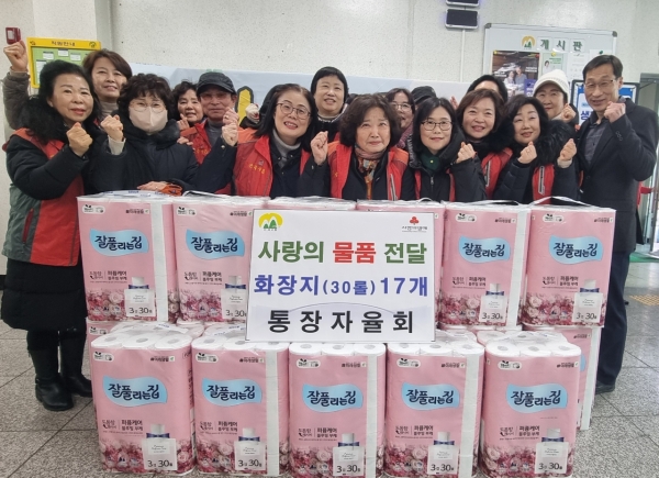 [금요저널] 부평구 산곡4동은 지난 10일 동 통장자율회로부터 생필품인 화장지 17세트를 전달 받았다.