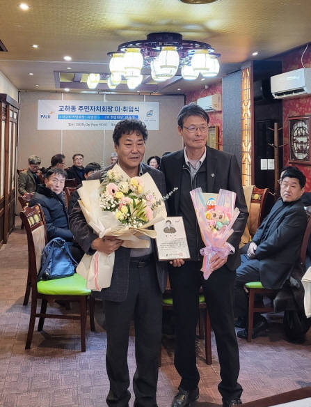 [금요저널] 파주시 교하동은 지난 11일 최호진 교하동장, 윤후덕 국회의원, 박은주·최창호 파주시 의원, 각 동 주민자치회장, 단체장, 주민자치위원 등 100여명이 참석한 가운데 제2·3기 주민자치회장 이취임식을 성황리에 개최했다.