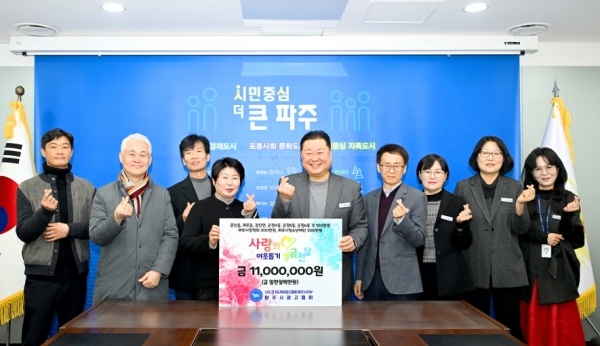 이번 성금은 문산읍, 파주읍, 광탄면, 운정4동, 운정5동, 운정6동에 각 100만원씩 총 600만원이 기탁될 예정이다.
