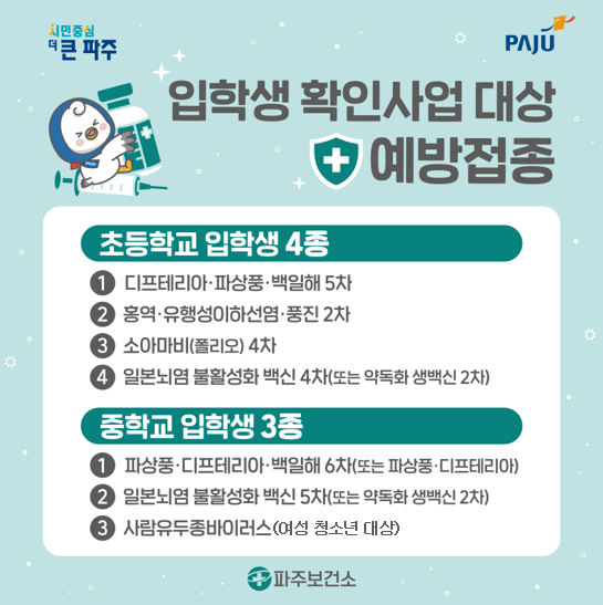 파주시, 초중학교 입학생 ‘예방접종’완료하세요