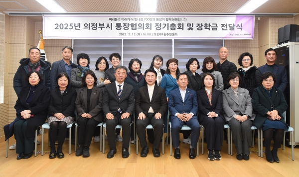 [금요저널] 의정부시는 2월 13일 의정부1동주민센터에서 통장, 장학생, 내빈 등 120여명이 참석한 가운데 ‘2025년 의정부시 통장협의회 정기총회 및 장학금 전달식’을 개최했다.