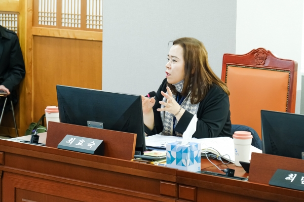 이어 최효숙 의원은 여성가족국에 “선도교육청 0-2세 영아 급식비 감사원 사전컨설팅 관련해 예산 집행을 경기도만 요청할 것이 아니라 17개 시도의 협의체 구성을 통해 정부와 교육부에 적극적으로 개진해야 한다”고 설명하며 “먼저, 경기도 주도하게 기존 경기·서울·인천 협의체를 통해 정부 및 교육부에 해결할 수 있는 방안을 마련하도록 움직이고 성과를 내 달라”고 당부했다.