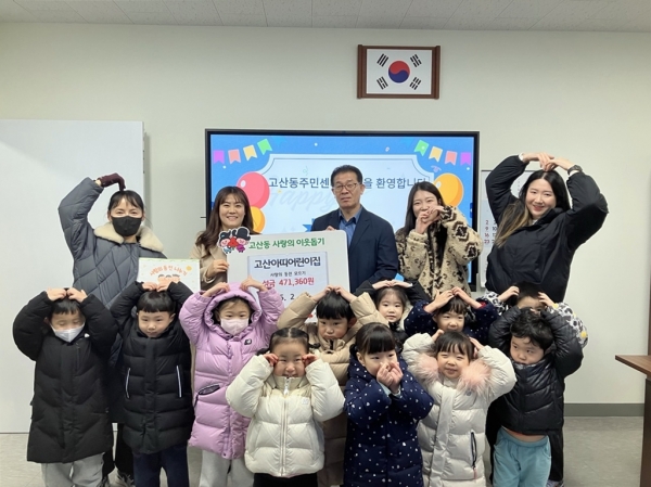 이봉득 동장은 “지난해 사랑릴레이 참여에 이어 새해에도 따뜻한 마음을 전달해 주신 고산아띠어린이집 관계자분들과 아이들에게 감사드린다”며 “아이들이 십시일반 모은 작은 정성이 봄의 따뜻함과 함께 널리 전달되도록 하겠다”고 말했다.