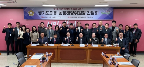 이번 간담회에는 방성환 위원장을 비롯해 이오수, 이영주 도의원이 참석했으며 경기도 농업정책과장, 축산정책과장, 지도정책과장과 양주시 시장, 의장, 농업기술센터 소장, 지역농협 관계자 등이 함께해 양주시 농업 현안과 발전 방향을 논의했다.