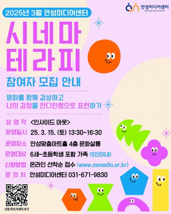 [금요저널] 안성미디어센터는 2025년 3월 ‘시네마 테라피’ 프로그램 참가자를 모집한다.