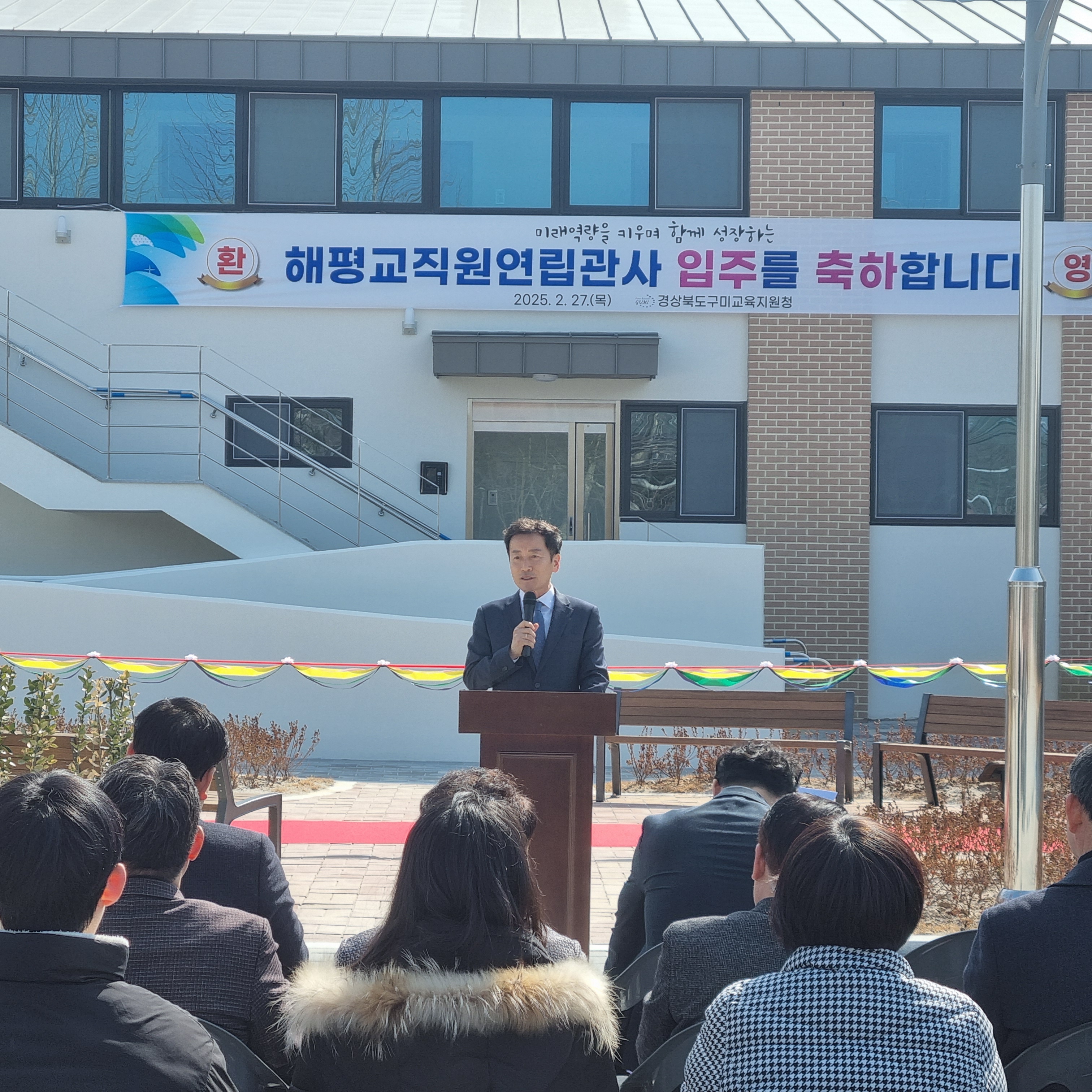 ❑ 경상북도구미교육지지원청(교육장 남성관)은 지난 27일 최근 준공된 연립관사에서 입주자, 지역주민 및 교육지원청 관계자 50여명이 참석한 가운데 입주식을 개최했다.