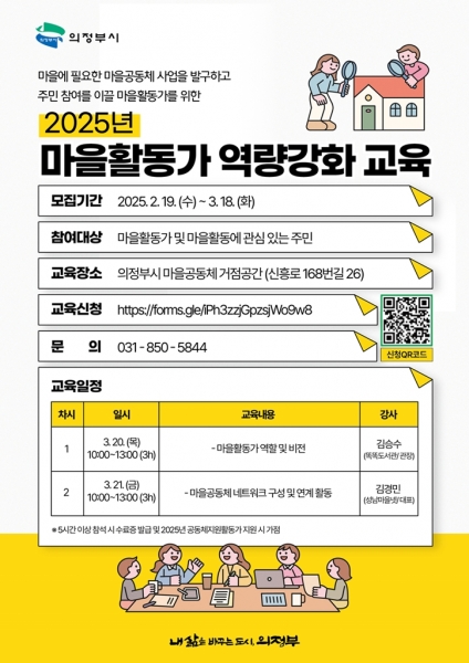 [금요저널] 의정부시는 3월 20~21일 의정부시 마을공동체 거점공간에서 ‘마을활동가 역량강화 교육’을 운영한다.