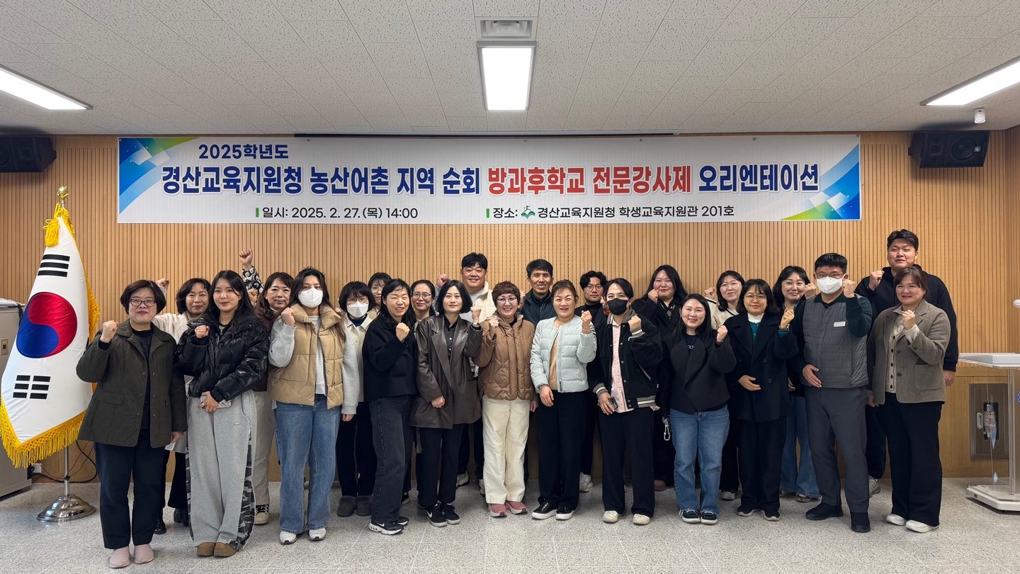 □ 경산교육지원청(교육장 박경화)은 2월 27일(목) 14시 경산교육지원청 학교교육지원관 201호에서 2025 농산어촌 순회방과후학교 전문강사 오리엔테이션 및 청렴서약식을 실시하였다.