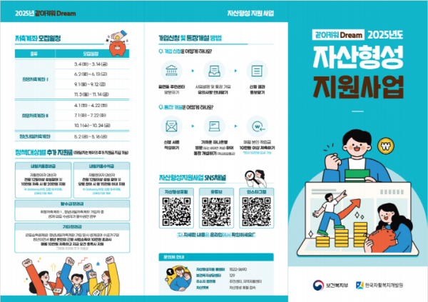 권예자 복지지원과장은 “열심히 일하는 저소득층과 사회 초년생인 청년들의 내일을 위해 자산형성지원사업을 실시한다”며 “지원금 이외에도 합리적인 저축, 소비, 자산관리 등 실생활 속 현실적 경제교육에도 꾸준히 힘쓰겠다”고 말했다.