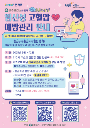 [금요저널] 파주시는 임신성 고혈압으로 인한 조산 및 신생아 사망을 예방하는 ‘임신성 고혈압 예방관리 사업’을 3월 10일부터 실시한다.