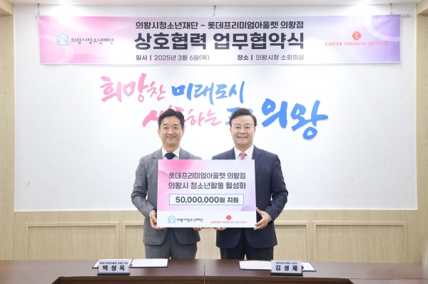 이번 협약식에는 김성제 의왕시청소년재단 이사장 및 전영남 대표이사, 박상옥 롯데프리미엄아울렛 의왕점 점장 등의 관계자들이 참석했다.
