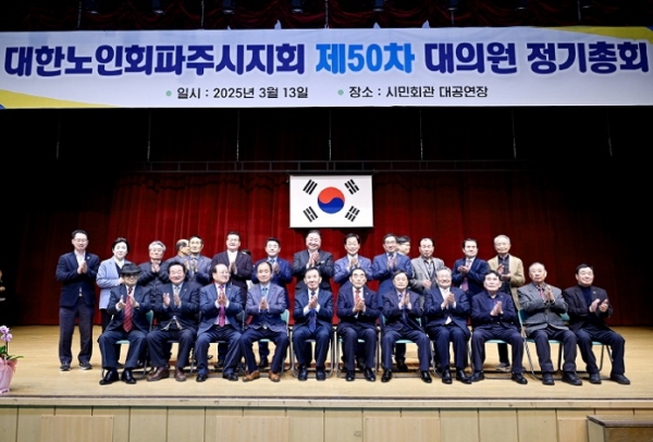 이번 제50차 정기총회에는 지역 경로당 회장 등 400여명의 대의원들을 비롯해 김경일 파주시장과 윤후덕·박정 국회의원, 박대성 파주시의회 의장 등이 참석했다.