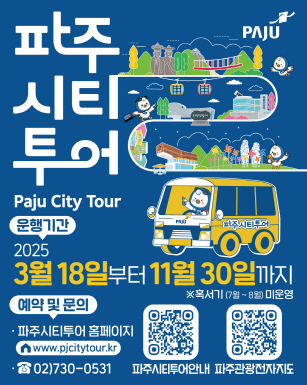 [금요저널] 파주시는 대표 관광지를 권역별로 연계한 ‘파주시티투어’ 버스를 3월 18일부터 운행한다.