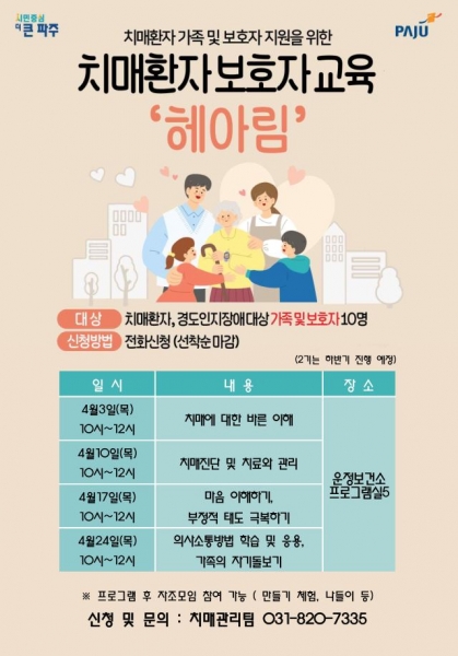 파주 운정보건소, 치매환자가족교육‘헤아림’ 참여자 모집