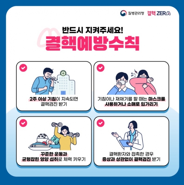 또한, 보건소를 방문하는 주민들을 대상으로 결핵 예방수칙이 담긴 안내문을 배부하고 전광판 및 SNS 등 다양한 매체를 통해 조기 검진의 중요성과 기침 예절을 알리는 등 홍보 활동을 펼친다.