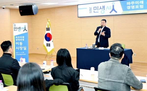 [금요저널] 파주시는 3월 18일 민생경제 회복과 지역경제 활성화를 위해 조리읍 행정복지센터에서 ’파주미래경영포럼 이동시장실‘을 개최했다.