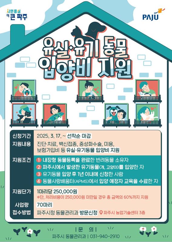 자세한 사항은 파주시청 누리집에서 확인하거나 동물관리과 반려동물팀으로 문의하면 된다.