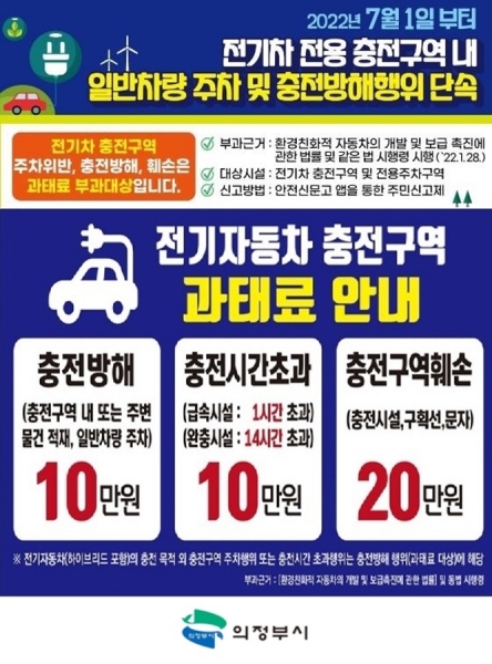 [금요저널] 의정부시는 환경친화적 자동차 전용주차구역에 대한 주정차 위반 단속을 시행하고 있다.