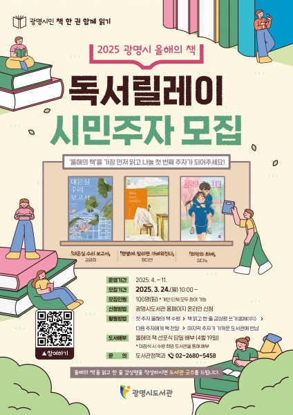 [금요저널] 광명시는 오는 24일부터 ‘2025 광명시 올해의 책’을 함께 읽는 독서릴레이에 참여할 시민주자 100명을 선착순 모집한다.