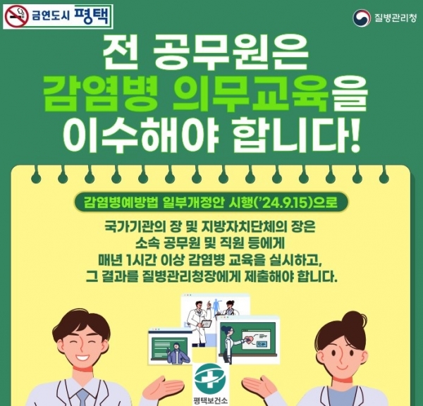 [금요저널] 평택시는 3월부터 전 공무원을 대상으로 감염병 대응 역량 강화를 위한 감염병 의무교육을 실시한다고 밝혔다.