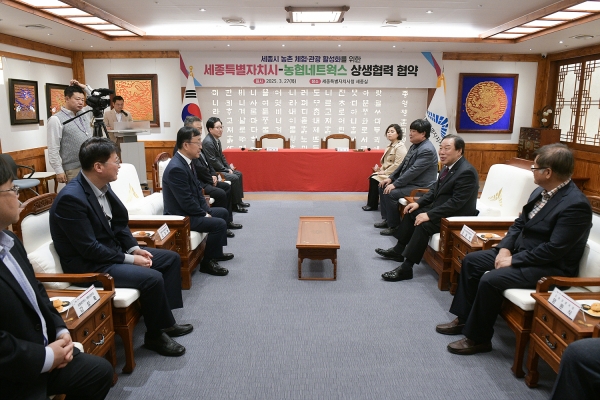 [금요저널] 세종시가 27일 시청 5층 세종실에서 농협네트웍스와 세종 농촌 체험·관광 활성화를 위한 상생협약을 체결했다.