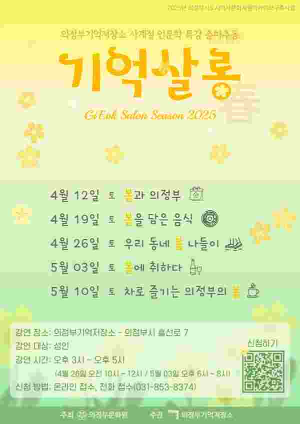 봄 프로그램은 △의정부의 세시풍속 △우리 동네 봄 나들이 △제철 음식과 차 △전통주 등 지역과 계절을 연결한 다양한 주제를 다룬다.