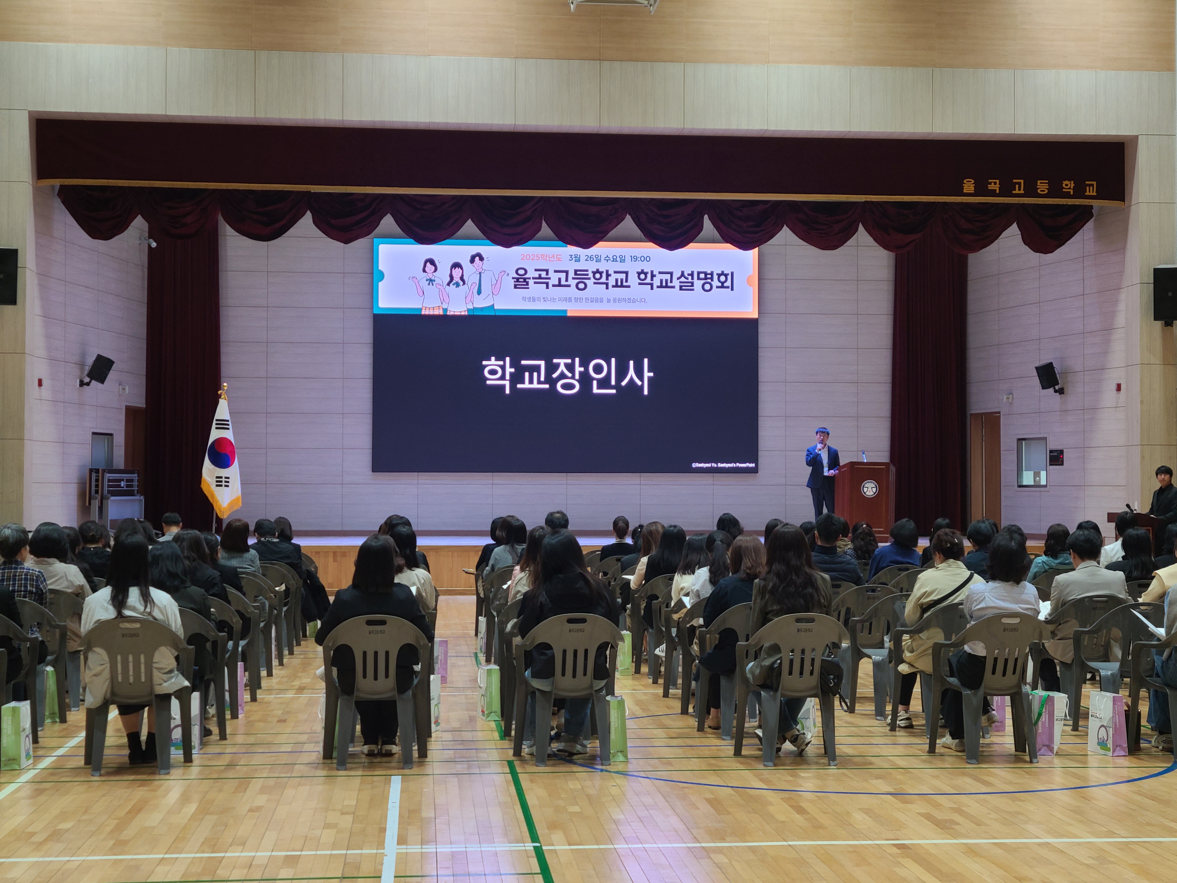 □ 율곡고등학교(교장 이충희)는 본교 학부모들을 대상으로 3월 26일에 본교 강당에서 2025학년도 학교 설명회 및 학부모 총회를 성황리에 개최하였다.
