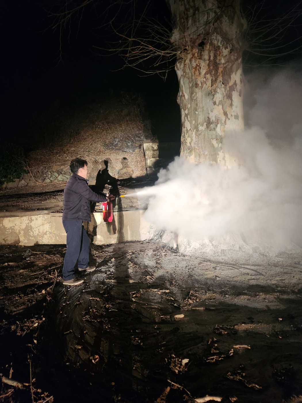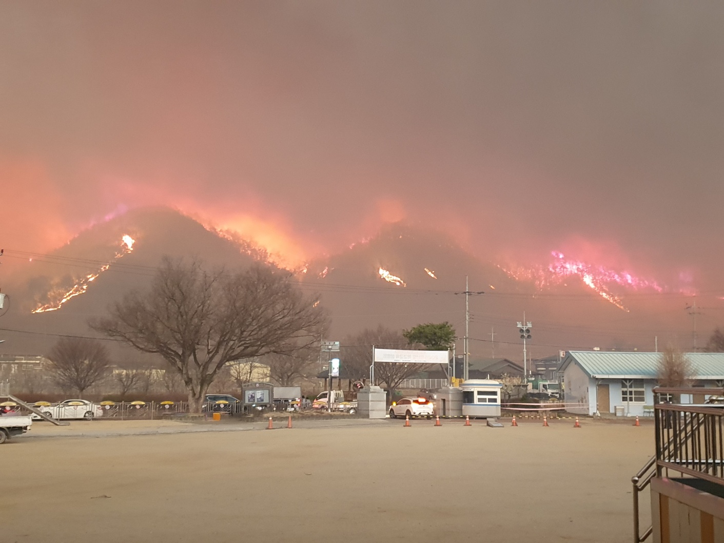 27일(목) 저녁에는 잠잠해지던 산불이 남후면과 일직면 원호리에 다시 확산되자, 인근에 위치한 일직초를 사수하기 위하여 지원청 보유 소화기를 싣고 현장에 출동하여 소방관들과 함께 상황을 주시했다.