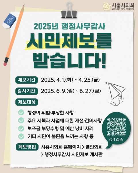 시흥시의회, 4월 1일부터 행정사무감사 시민제보 접수 시작