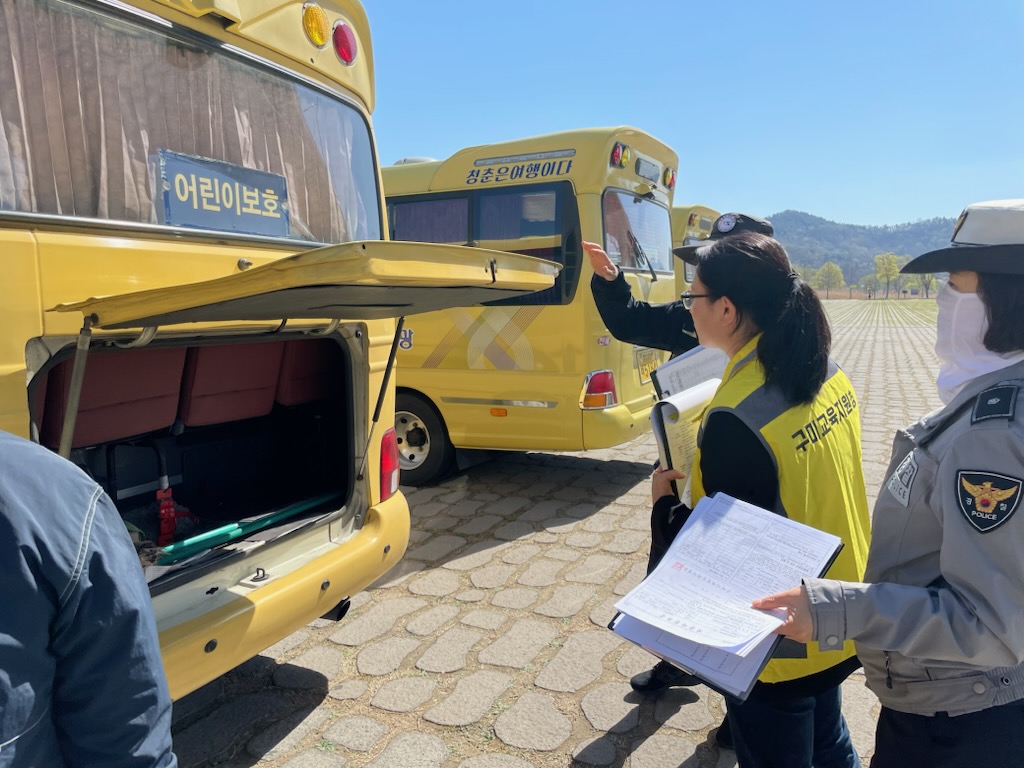 □ 경상북도구미교육지원청(교육장 남성관)은 지난 7일 낙동강체육공원 주차장에서, 유치원·초등학교 6개교 차량 14대와 학원 29개원 차량 20대에 대해 상반기 어린이 통학버스 관계부처 합동 점검을 실시했다.