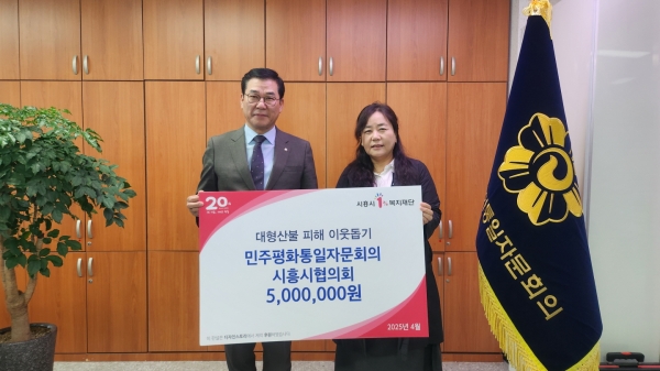 성금은 4월 2일부터 7일까지 민주평통 시흥시협의회 자문위원들의 자발적인 참여로 모금됐으며 성금 전액은 시흥시 1%복지재단을 통해 울산, 경북, 경남 등 산불 피해 지역 주민들에게 전달될 예정이다.
