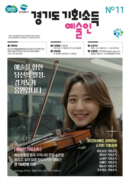 [금요저널] 의정부시는 4월 21일부터 5월 30일까지 ‘경기도 예술인 기회소득’ 신청 접수를 진행한다.