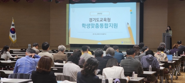 관리자 연수를 진행한 경기도교육청 조순옥 사무관은“학생맞춤통합지원 체계는 교육공동체의 협력적 소통을 통해 복합적 어려움에 처한 학생을 조기에 발견, 개입, 지역사회 연계 등으로 개별 학생의 필요와 요구에 맞는 맞춤형 통합지원을 통해 교육복지 사각지대를 해소하고 학생들의 성장을 지원하는 사업”임을 강조했다.