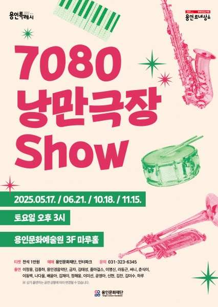 [금요저널] 용인문화재단은 오는 5월부터 11월까지 작년에 이어 실버 세대를 위한 공연, 2025년 ‘7080 낭만극장쇼’를 용인문화예술원 마루홀에서 개최한다.