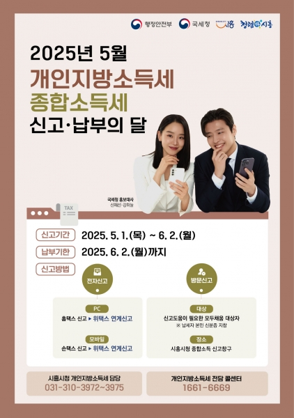 [금요저널] 시흥시는 5월 1일부터 6월 2일까지 개인지방소득세·종합소득세 신고·납부의 달을 운영한다.