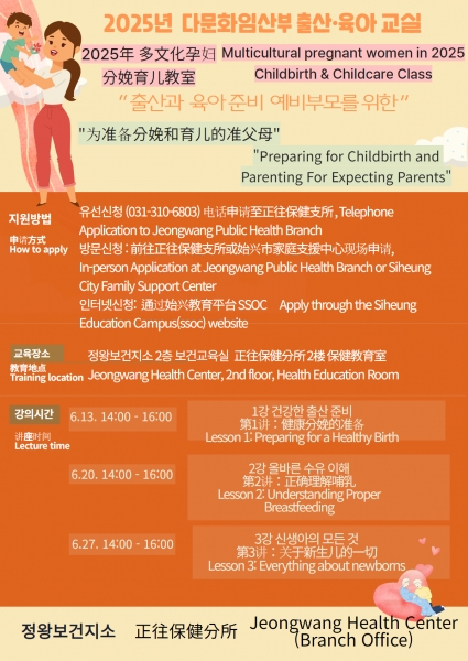 [금요저널] 시흥시는 다문화가정 임산부와 가족을 위한 맞춤형 출산·육아 강좌를 오는 6월에 운영하기로 했으며 이에 앞서 5월부터 참여자를 모집한다.