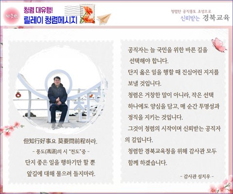 경북교육청, 기관장 릴레이 청렴 메시지 캠페인, 청렴한 경북교육청을 만들다