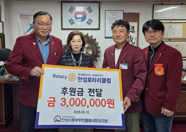 이번 후원금이 도움이 되길 바라며 안성로타리클럽도 사회공헌의 책임감을 갖고 지속적으로 연대하겠다”고 말했다.