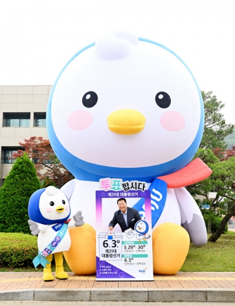 [금요저널] 파주시는 제21대 대통령 선거를 앞두고 시민들의 소중한 투표권 행사를 독려하기 위해 28일 오전 8시 30분부터 파주시청 앞에서 파주시 대표 캐릭터인 ‘파랑’과 함께 '투표 참여 독려 캠페인'을 진행했다.