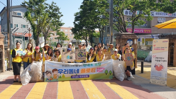 우리 동네 플로깅 ‘한내초 쓰담’ 캠페인에는 한내초등학교 학부모회와 교직원, 학생 등 660여명이 참여했으며 학생들은 등교 시 각 가정에 모아 두었던 투명 페트병을 수거함에 넣으며 분리배출을 통한 탄소중립 실천과 환경보호의 중요성을 체험했다.