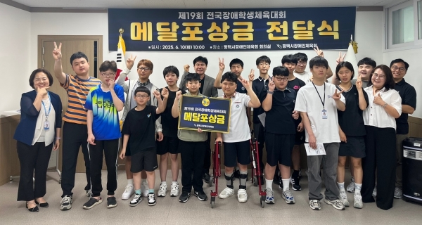 [금요저널] 평택시 장애인체육회는 지난 10일 ‘제19회 전국장애학생체육대회’에서 우수한 성과를 거둔 평택시 선수단을 대상으로 메달 포상금을 전달했다고 밝혔다.